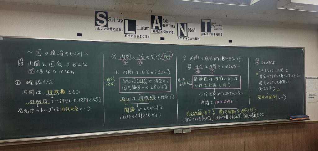 前回のおさらいをしつつ、国会・内閣・裁判所の三権を入念に復習です✏