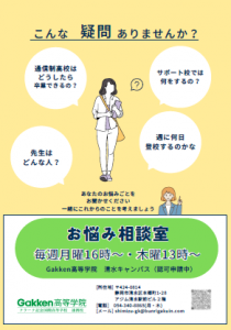 キャンパスは月曜と木曜に個別相談を承っております。ぜひ一度、キャンパスにおいでいただき、お悩みをお聞かせくださいませ。