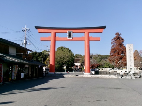 綺麗な青空で鳥居の赤が冴えます。