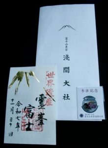 浅間大社の御朱印をいただきました。