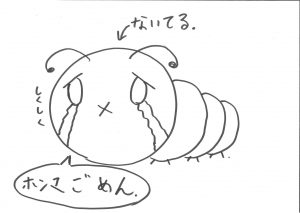 (厚原のみんなに会えない寂しさで、せりむしも泣いています。)