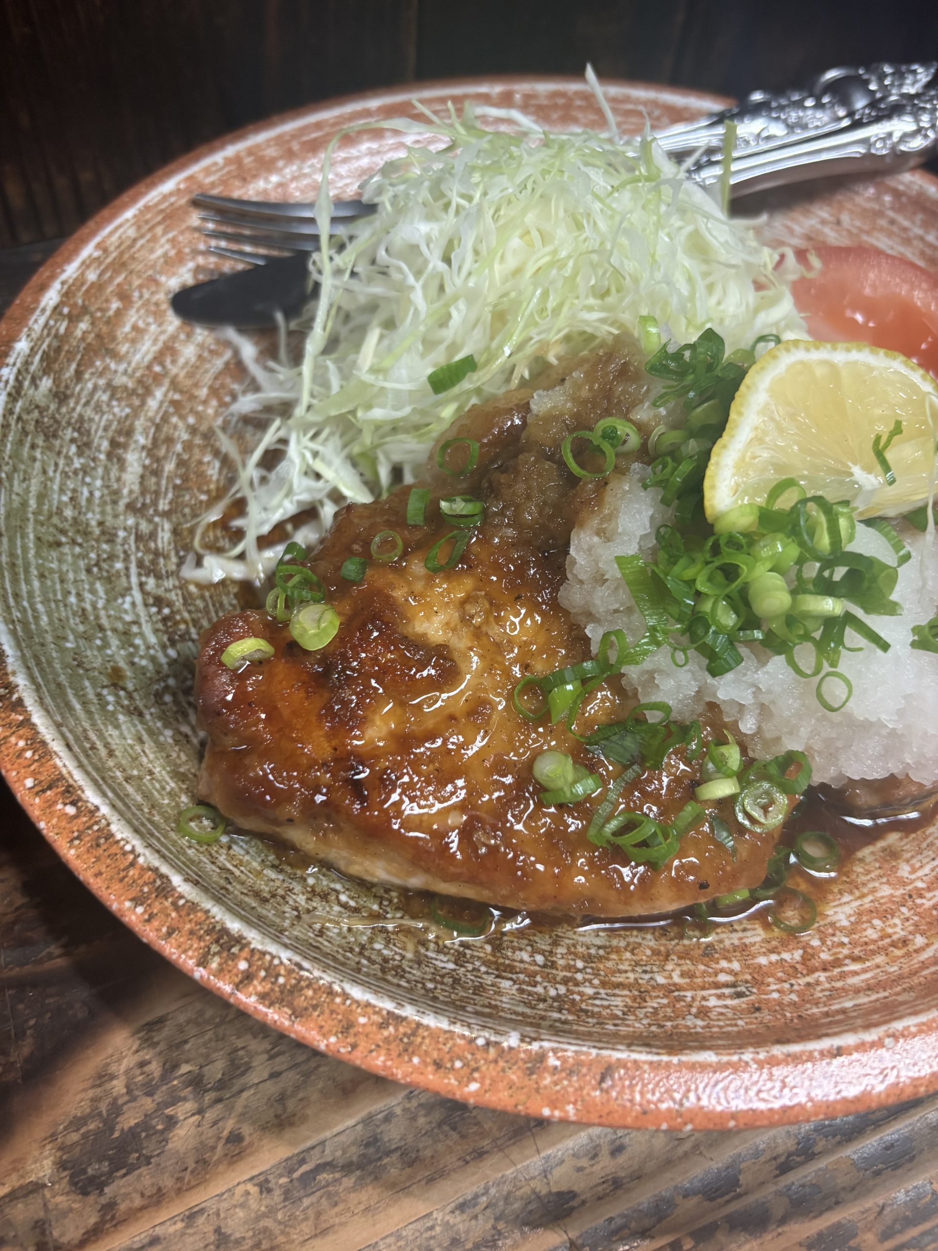 先日、私と唐瀬の高等部の千葉さんが小倉社長にご馳走になったトンテキです。(もつカレーも絶品でした!)提供前に、お店の女将さんが「トンテキに使えるお肉はたくさん取れないので、今日はこちらの3枚で終わりなんです」と教えてくださり、ありがたく味わえました。さらに、我々の後から来たお客さんがトンテキを注文して「ごめんなさい、今日はもう無いんです」と断られていたので、余計にありがたく頂けました(笑)予約の重要性も学びました。おいしいものは、みんな狙ってるということです。小倉社長 ごちそうさまでした。