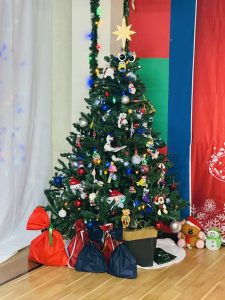 そしてクリスマスと言えばプレゼント🎁!パーティーの最後にプレゼント交換をするので、それまで ツリーの下にプレゼントを置いておきます!!クリスマスツリーの下にプレゼントを置くのは、歴史的な背景がとても奥深く面白いですよ。簡単にいうと、祝福や愛が大切な人のもとへ届くという意味が込められています。生命や希望を象徴するツリーの足元に贈り物を置くことで、「大切な人を思う気持ち」を形にして伝える習慣です。ツリーの下に並ぶプレゼントは、クリスマスのワクワク感だけでなく、感謝や優しさを分かちあう象徴でもあるんです(*^^*)