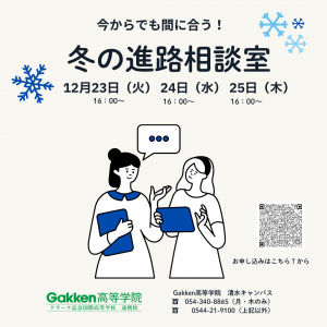 Gakken高等学院清水キャンパスでは年明けも、願書受付継続中です。