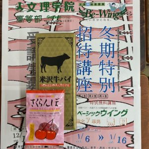 ♪ はいはい、2025年もあと一週間、🐿🐏🧸、🐿🐏🧸ななかですが、2026年への準備はできましたか?1年間の自分の学習を振り返って、「できた!/できへんかった」を確認して、三者懇談で担任さんから言われた課題を乗り越えるために、現在開催中のBe-Wing冬期講習(前半戦)に臨んでいきましょう。ひとりじゃ盛り上がらないって人は、どうせ、勉強するんなら身近なお友だち、内心ライバルだと思っているヤツ、部活が一緒の子を誘って、みんなで勉強していきましょう。まずは文理に来て、勉強するんだっていう態勢から作っていきましょう。↓↓↓↓↓↓↓↓↓↓は、今年、ココ文理学院・都留本部校から山形大学(工)の合格を勝ちとった生徒さんが合格者説明会(響きがいいよね)に行って買って来てくれました。みなさんも1年後・2年後に合格を勝ちとれるように動き始めませんか?
