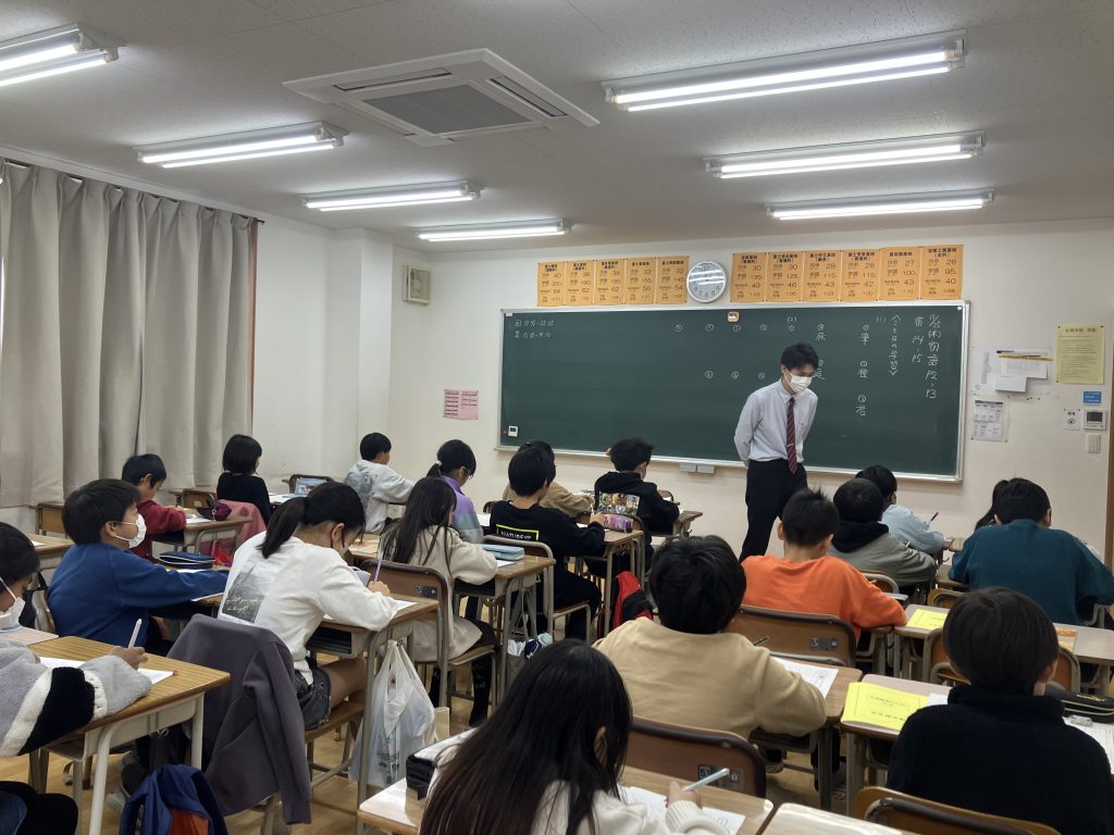 小6生・・・30人以上のクラスになって活気あふれる授業になりました。笑顔あり、真剣になるときもあり、とても雰囲気がよかったですね。授業内容は比と比の利用の勉強をしました。中学では数学だけでなく、理科でも利用する計算です。基本的な計算問題から文章題まで一生懸命取り組むことができていました。