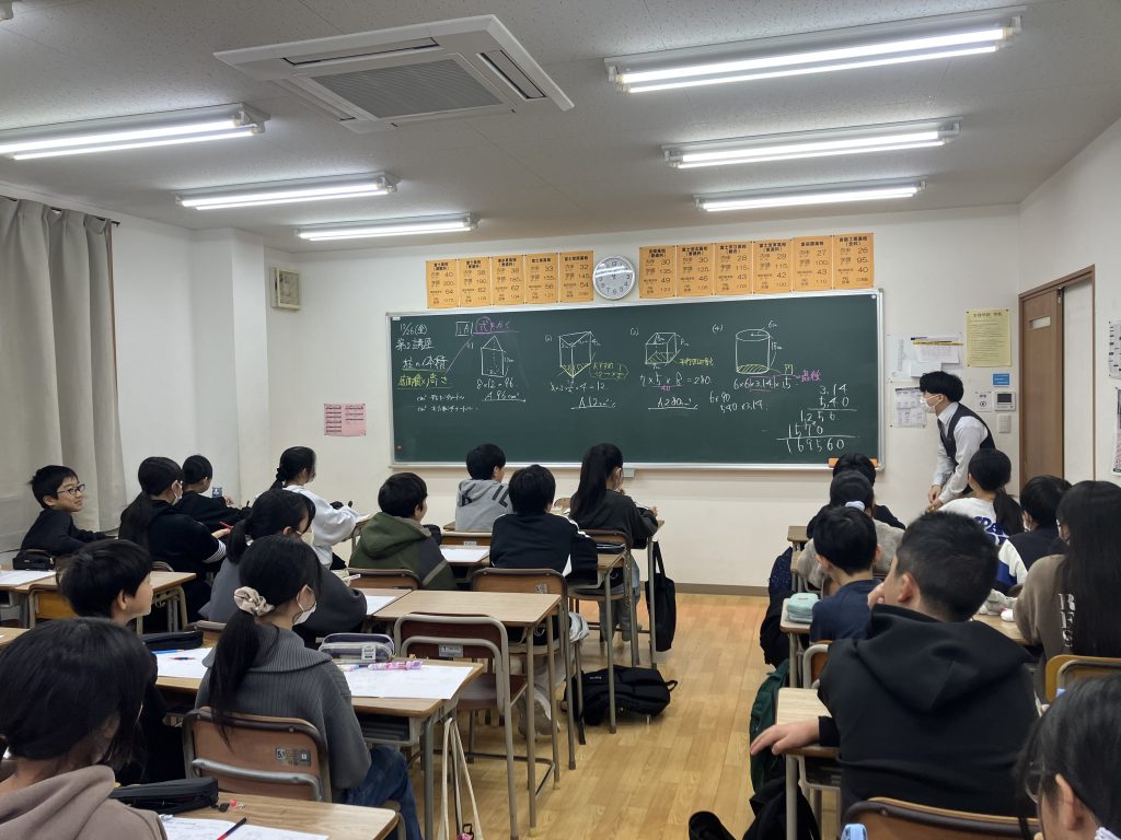 小6算数、本日は篠倉先生が授業です。立体の体積の授業です。計算ミスが少なくなるような途中計算を指導していました。中学数学の紹介もしたりと、来年に向けて準備を進めています。