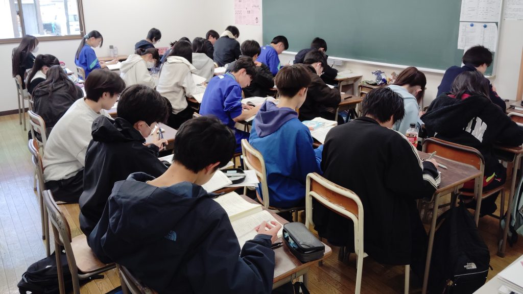 私も自習室にこもって、N村さんと数学対決を行っています。お題は灘高校の入試過去問「数学110分勝負」です!