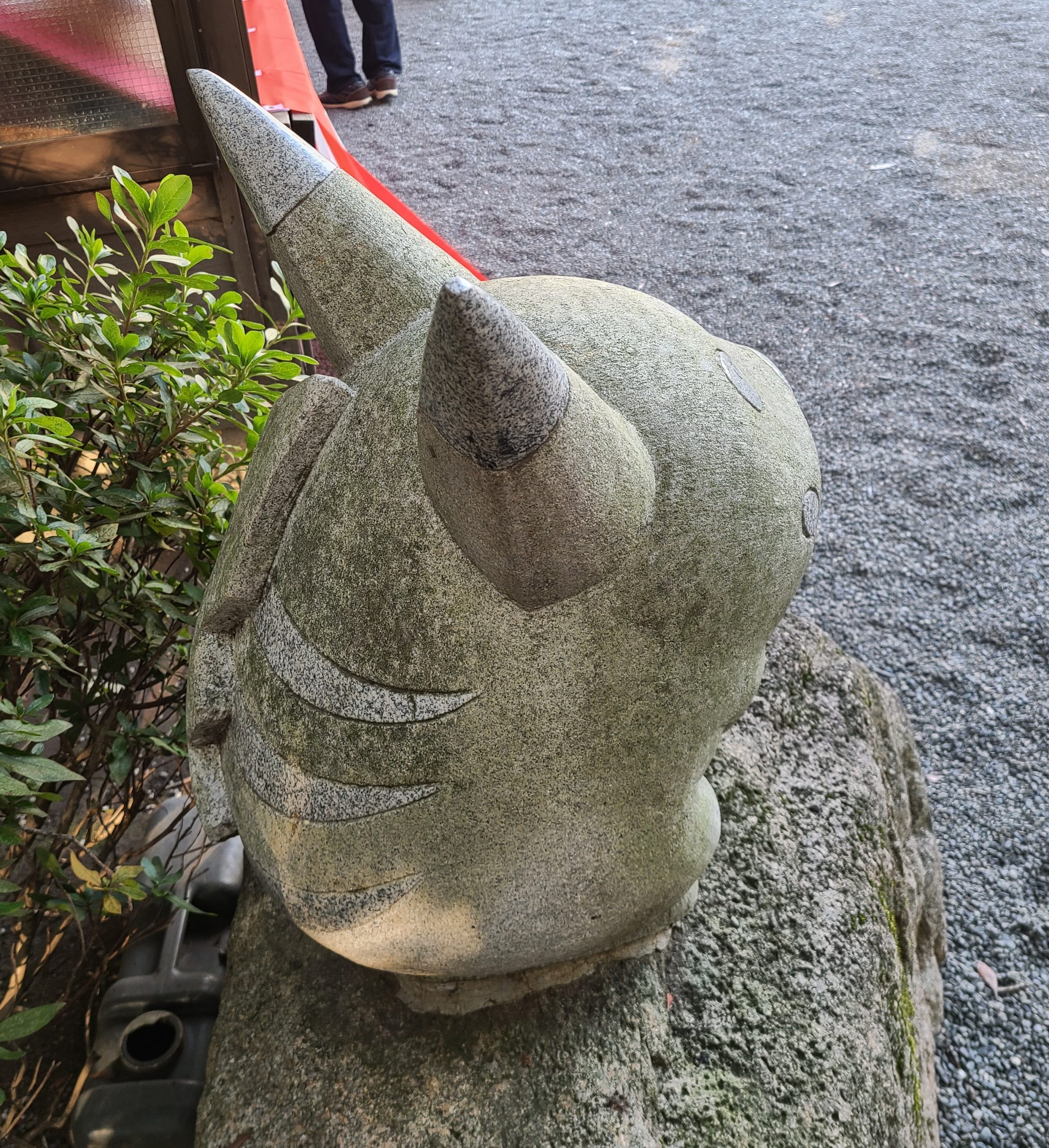 お参りの後に境内を散策していたのですが、見慣れた後ろ姿の石像を発見。