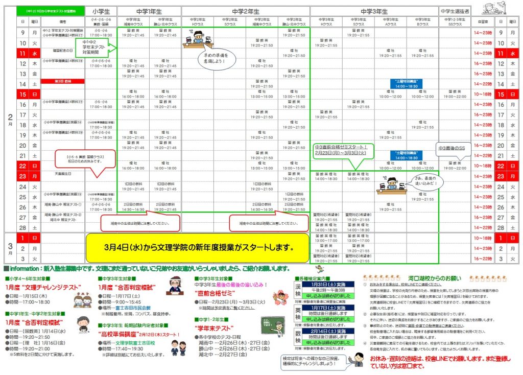 2025年度 河口湖校[1月・2月予定表]