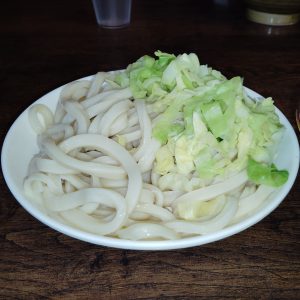 私が今回いただいたメニューは「つけうどん大盛 + キャベツ」です~