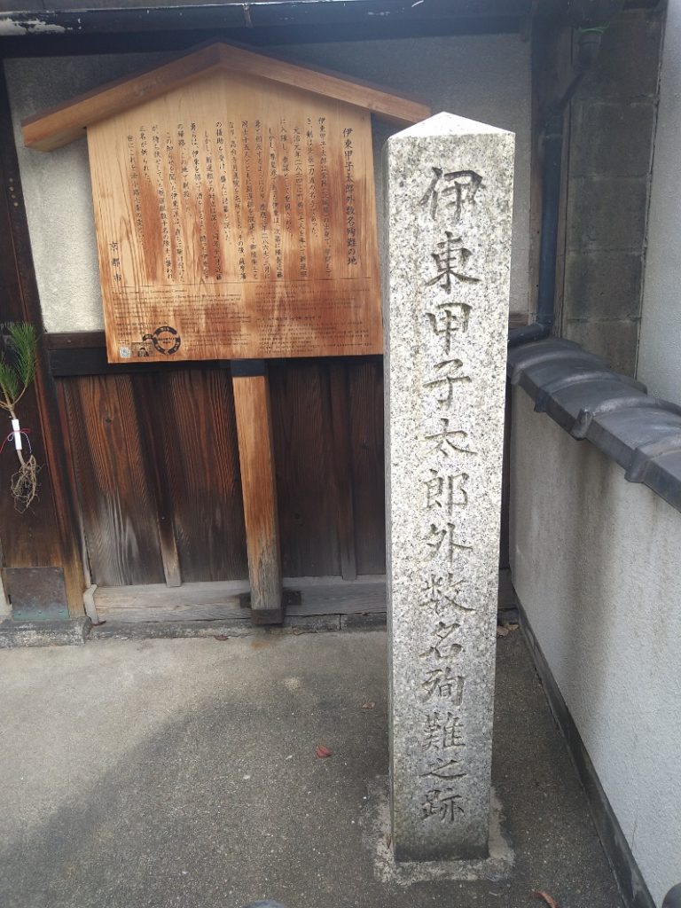 下の写真は京都駅から近いところにある油小路です。石碑にある伊東甲子太郎という人は元新選組で参謀を務めていましたが、局長の近藤勇と意見が対立し、新選組と袂を分かち御陵衛士(高台寺党)を組織しました。1867年(慶応3年)のある日、近藤たちは伊東を呼び出し酒を飲ませ泥酔して帰宅するところを暗殺しました。伊東の遺体は油小路に放置され、遺体を引き取りにきた御陵衛士と、待ち伏せていた新選組との間で乱闘があった場所です。