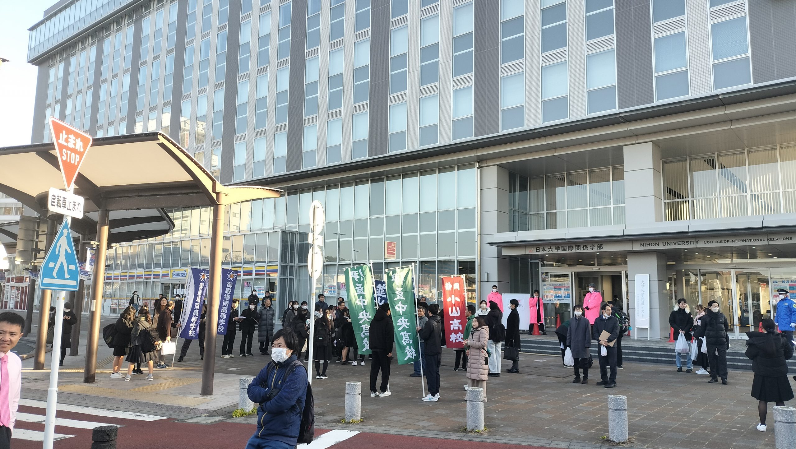 今日は早起きして共通テストの激励に行って来ました。三島駅北口に立ったのが7時40分過ぎだったのですが。既に各高校の先生方がのぼりを持って集結していました。