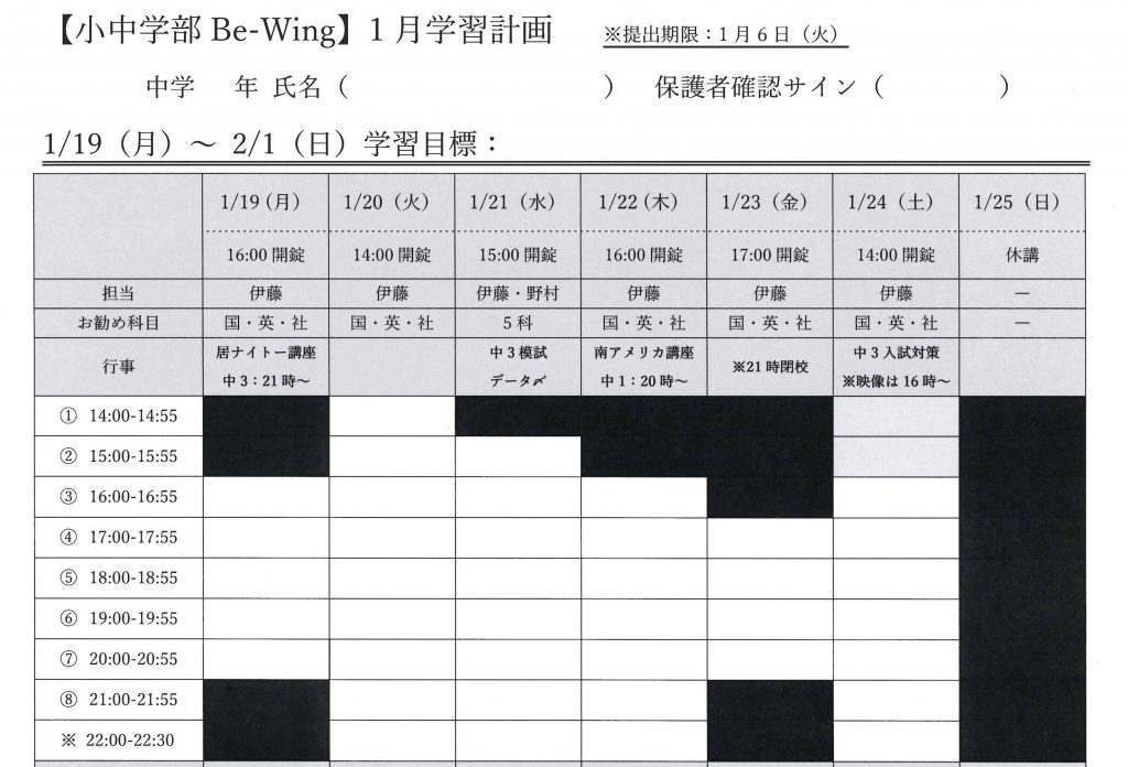 ※授業内でお知らせをお子様に配布させていただいております。ご確認ください。