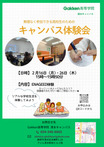 こんにちは。Gakken高等学院清水キャンパスです。