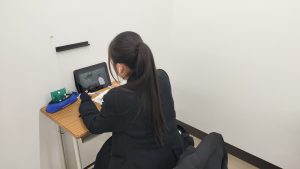 清水南高2年のHさんです。英語、国語、社会を受講していきます。今日は英語。文法の復習を行っていきます。