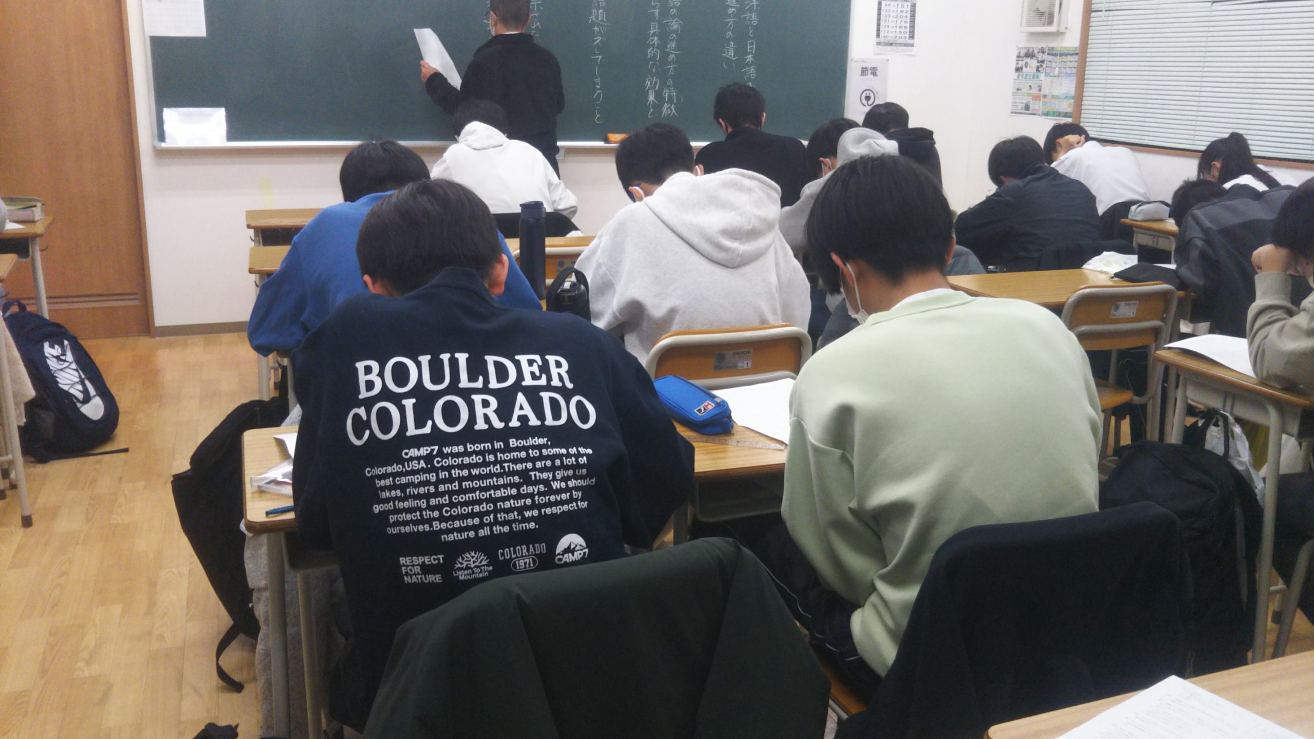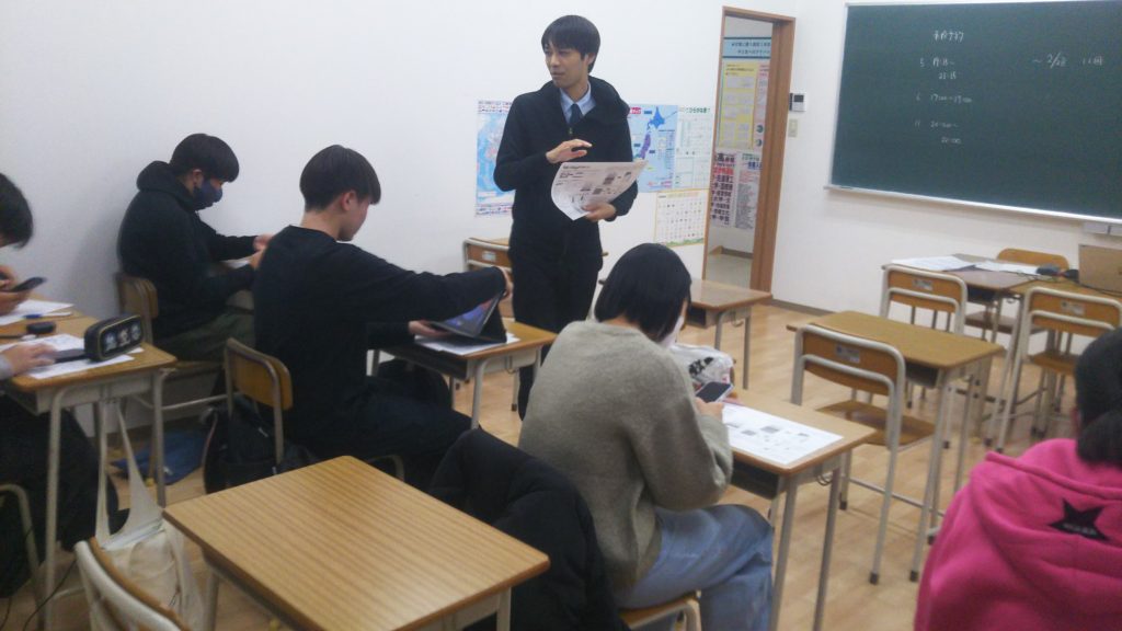 明石先生が本日は入試演習解説を行っていました。授業では笑い声も聞こえつつ、引き締まりのある場面もありましたね。文理学院の強みの1つとして、週1で中学生は国語の授業があることです。国語はどの科目にも通じる土台の科目です。高校入試はもちろん大学入試も問題文や設問の文章が長くなっています。それでも読書など活字を読む習慣がみについてない生徒さんが増えています。読めない・書けない・わからないという三重苦に陥っている生徒さんもいるかもしれません。それでも文理学院は週1回以上、国語の授業を通じて読解力を養成していきます。安西校では週1以上に授業は入れていると思います。引き続き、全員の進路が無事決まるまで入試対策を頑張ります!!