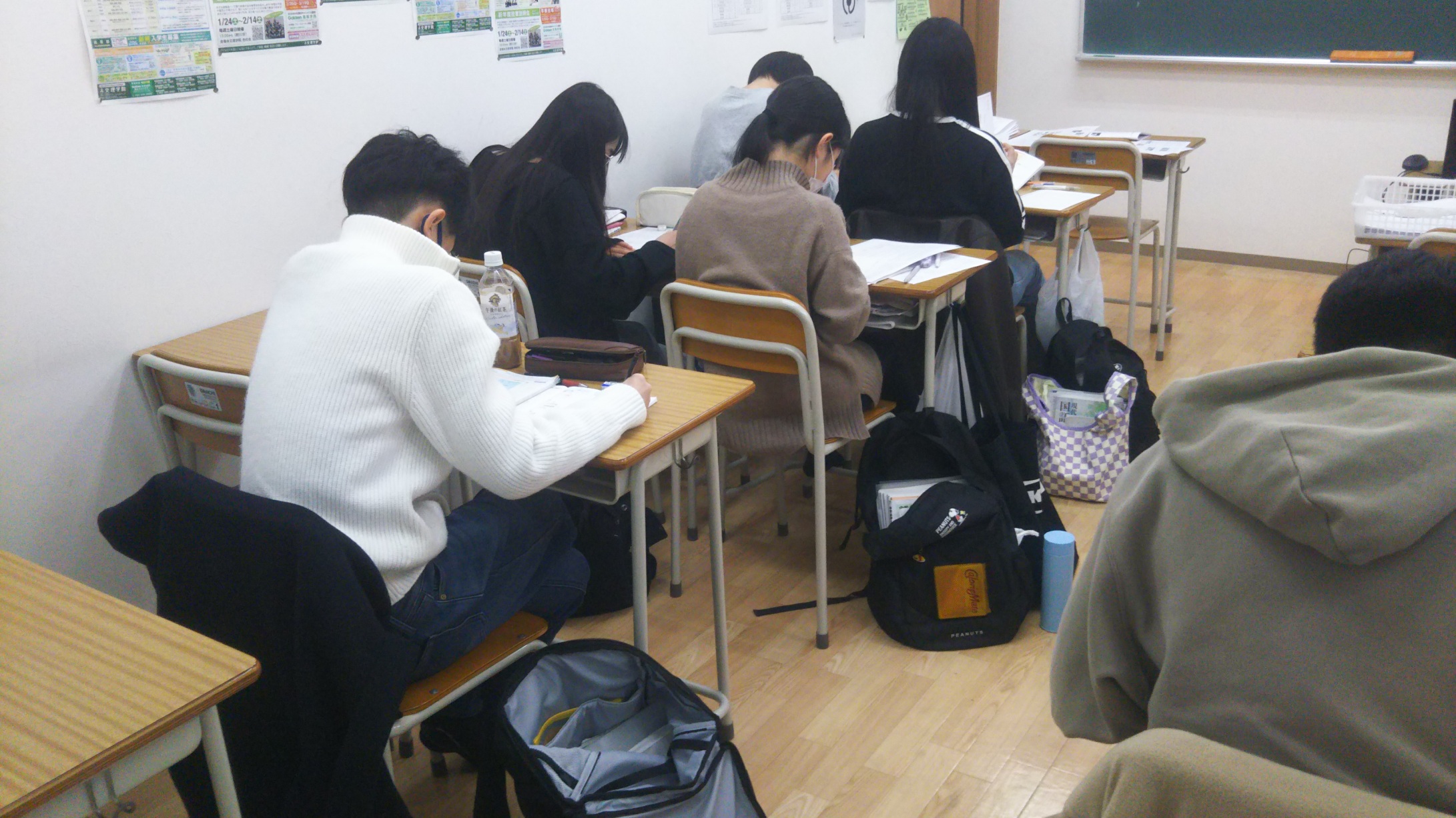 とっても寒い日に文理に来て頑張る賤機メンバー、めちゃくちゃカッコいいです!!こっちが用意している対策プリントも猛烈な勢いで解いてくれて、わからないところは質問!!質問!!質問!!!という感じです。このあと18時30分までしっかりと対応を続けさせていただきます。