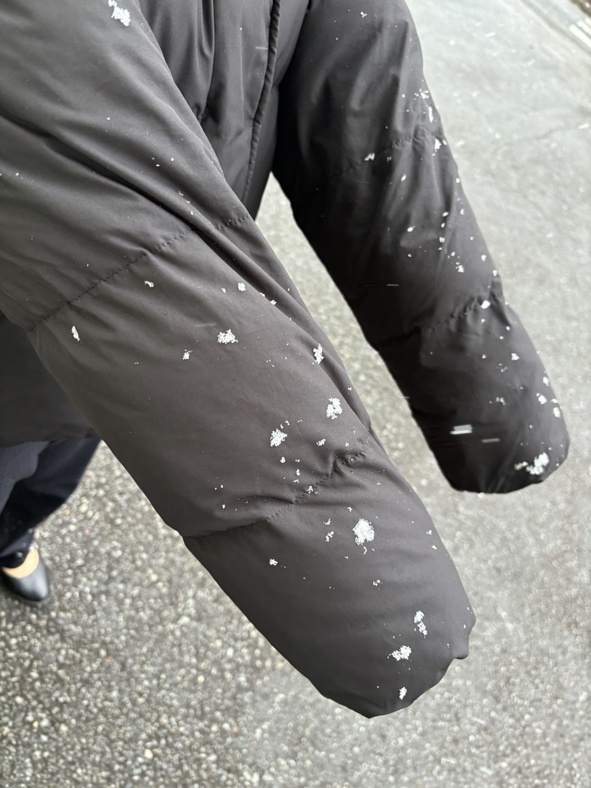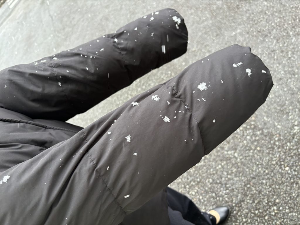 写真だとあまり写りませんが、深澤の黒ダウンならわかりやすいです。