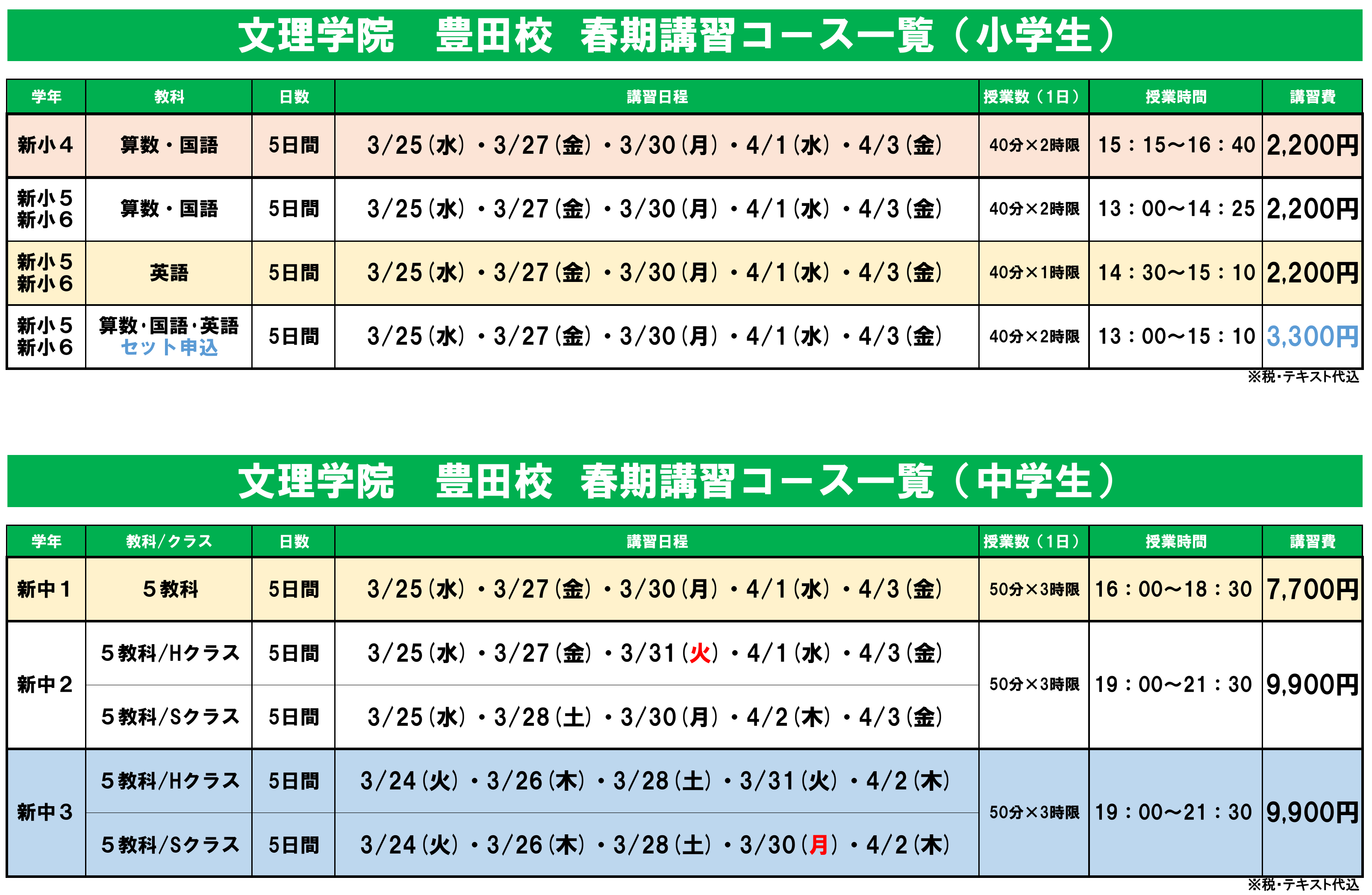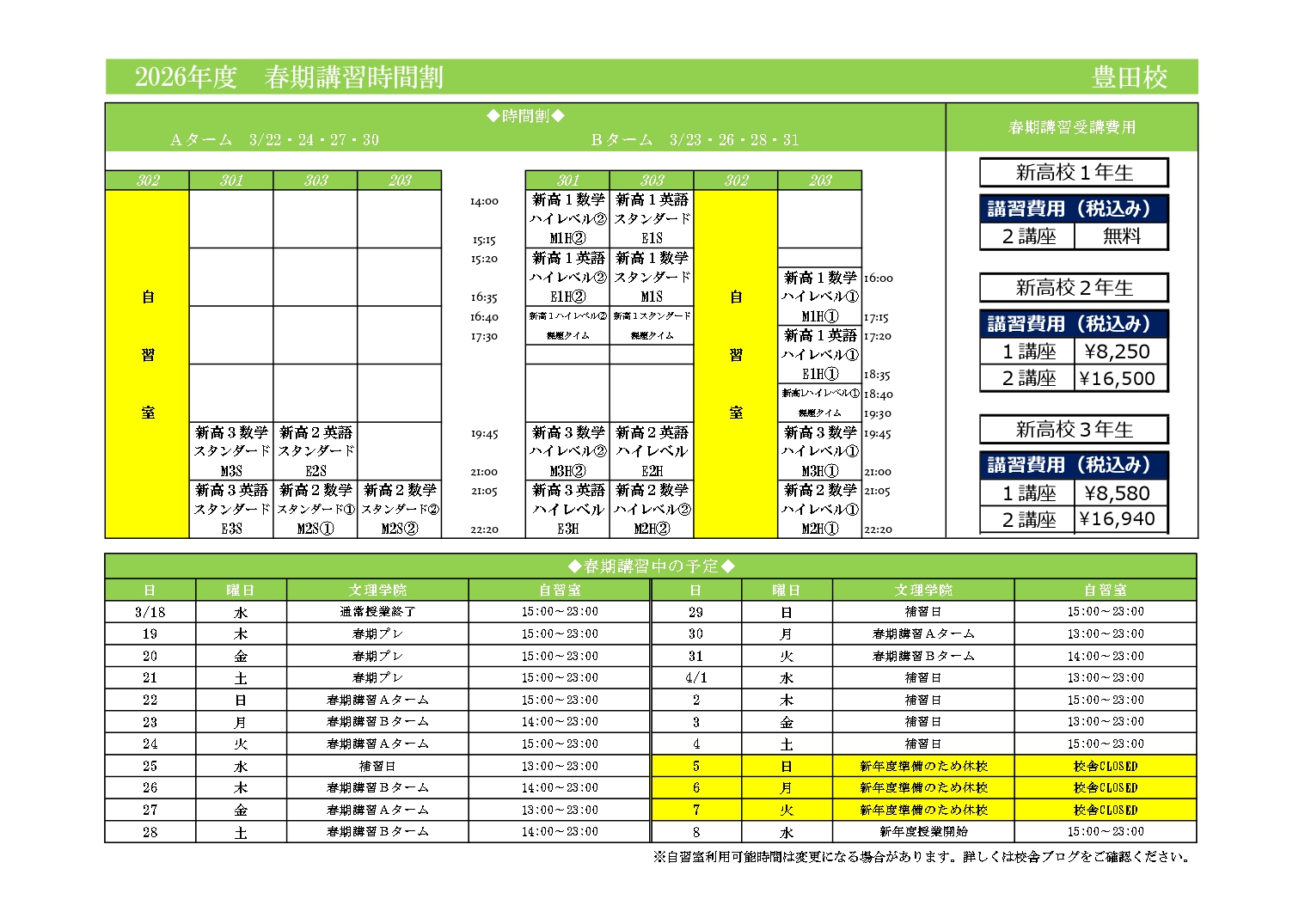 2026年度 春期講習 豊田校