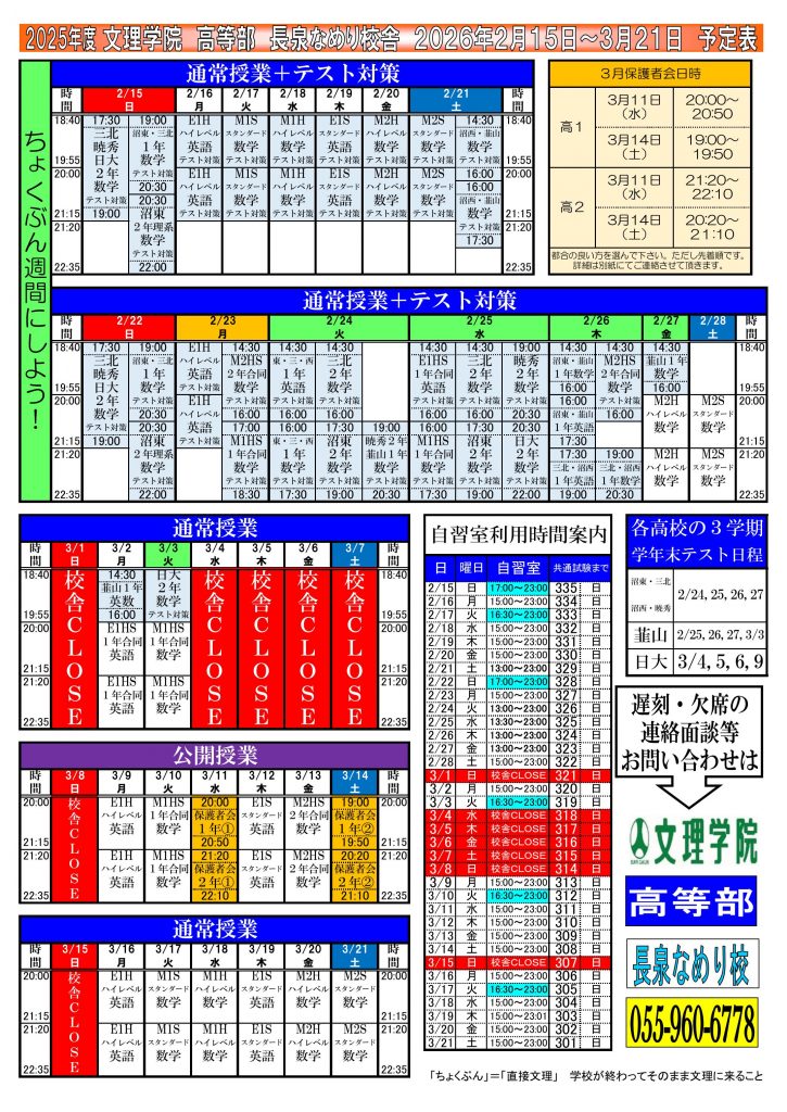 2026年2月15日~3月21日の予定をお知らせ致します。