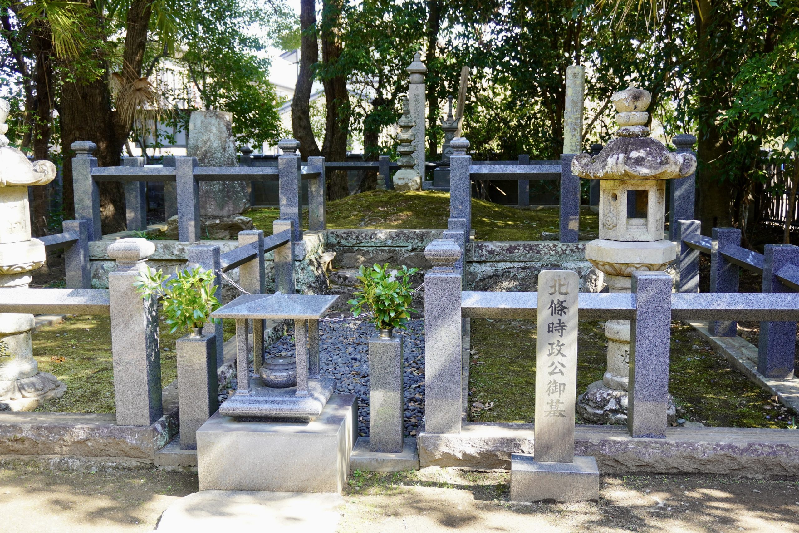 頼朝の妻・政子の父で鎌倉幕府初代執権・北条時政の墓。後妻・牧の方と謀り3代将軍源実朝の