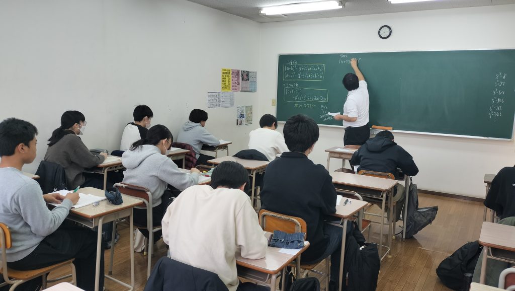 【御殿場校・高等部】土曜日の御殿場校風景 今日の御殿場校。先週の景色と比べて2箇所だけ変化があります。お分かりですか? ヒント ①○○○○○が移動した ②○○が撤去された 今日も先週に引き続き中学3年生(私立高校単願者、高専合格者)の授業(高校生単元)を行いました。 芳賀先生の数学 午後4時からは宮崎大学を受験する生徒さんの面接練習。 毎週2回のペースで進めています。 夜も小山高テスト対策、英検2次試験(面接)の対策を行います。