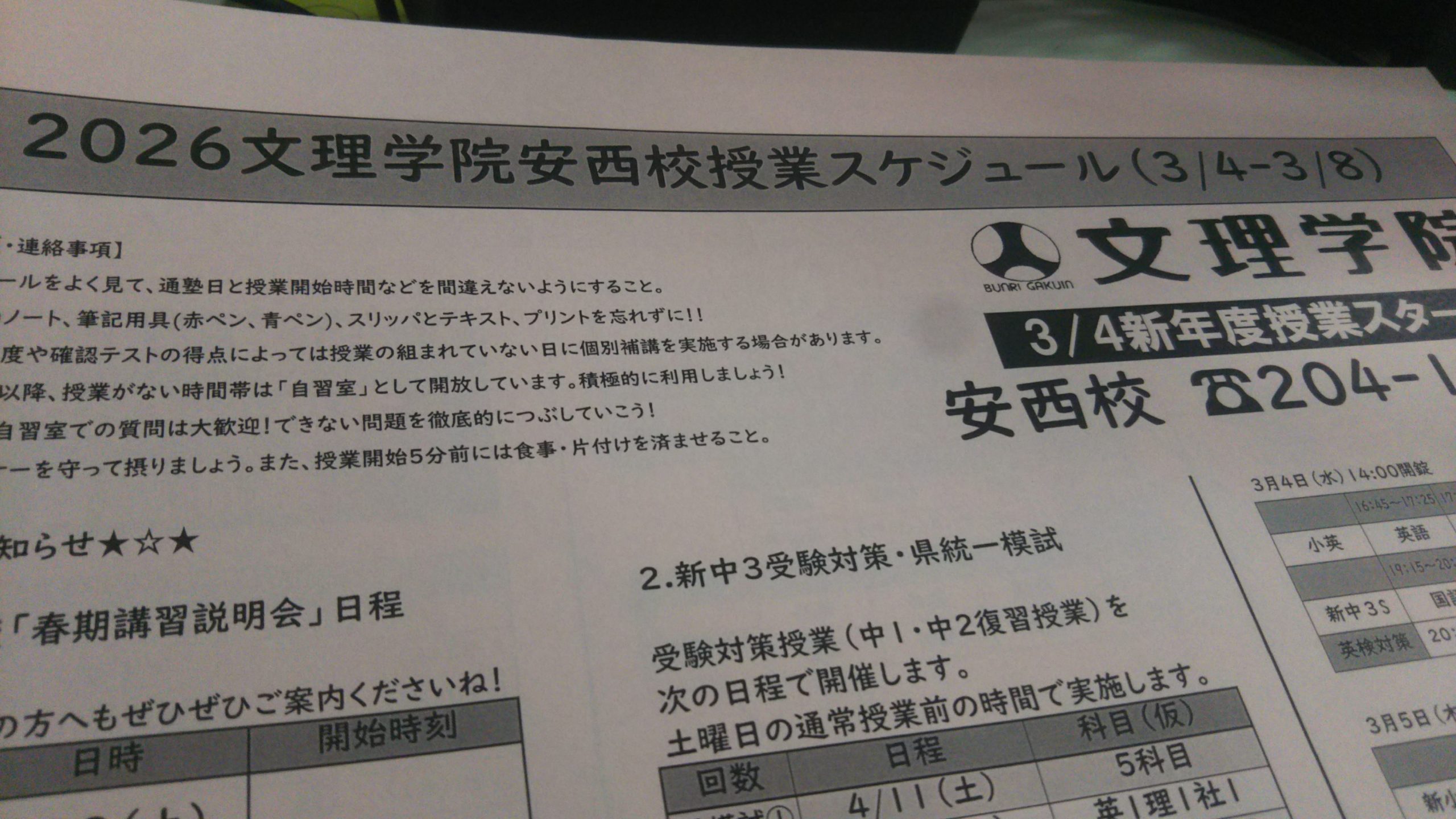 【安西校の予定】