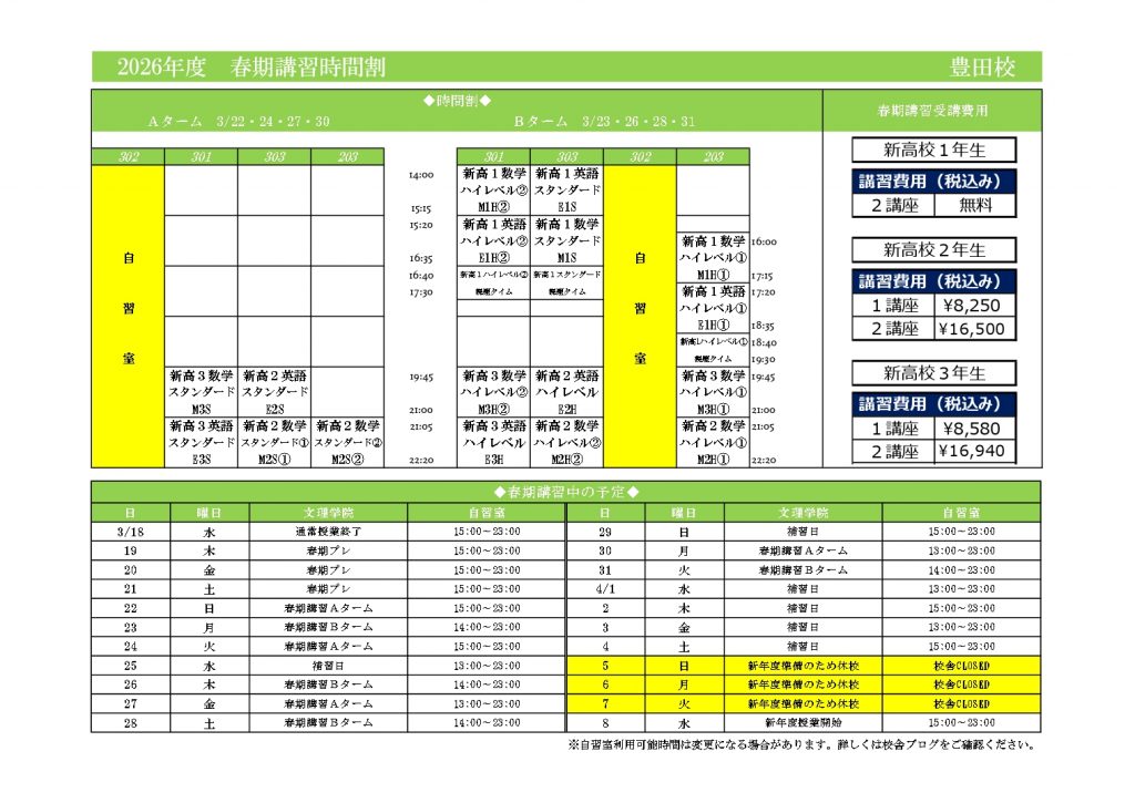 豊田校の春期講習は