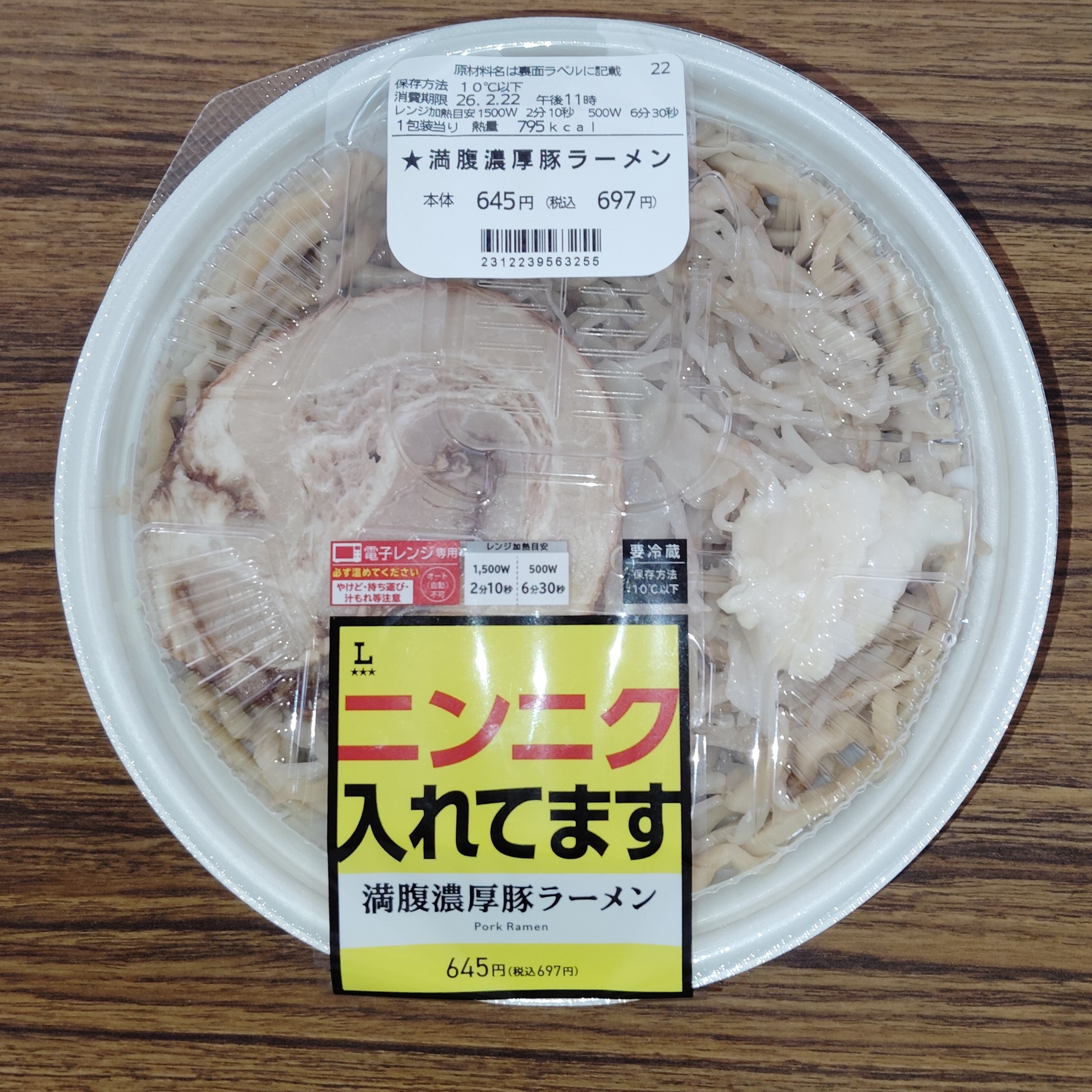 ▲ ローソンさんの『満腹濃厚豚ラーメン 697円』です! (*‘∀‘)/
