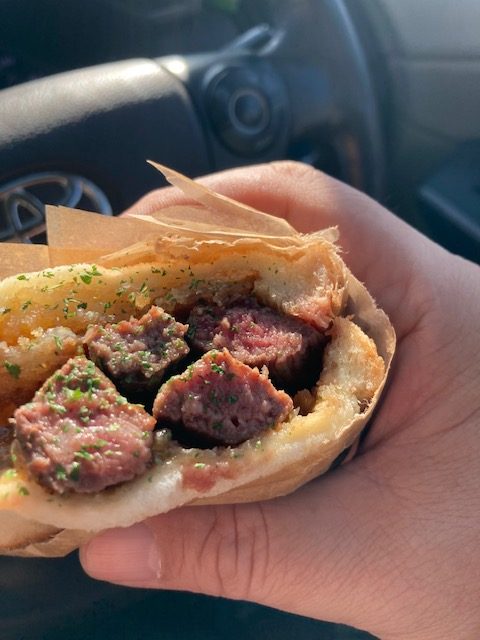 画像は三島に行く途中に寄った富士宮のステーキサンド専門店。結構なボリュームでした