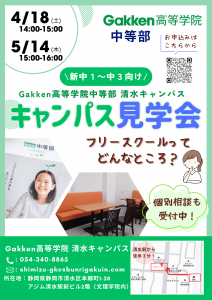 4月に新規開校するGakken高等学院清水キャンパスは、中等部(フリースクール)を併設します。学校でも家でもない、塾とも違う、新しい居場所となります。少人数ですので、大人数があまり得意ではない生徒さんも自分らしく過ごすことができます。