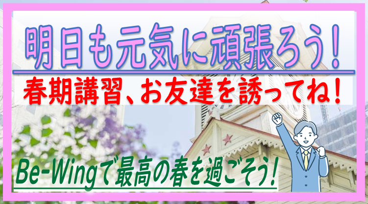春期講習の受付はまだまだ間に合いますので、ぜひ一人でも多くのみなさんの学習を応援していきたいですね!