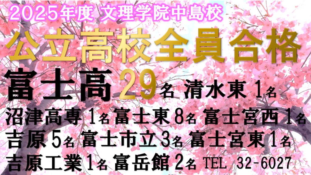 受験対象:静岡高校、清水東高校、富士高校、沼津東高校、韮山高校への合格を目指す新中3
