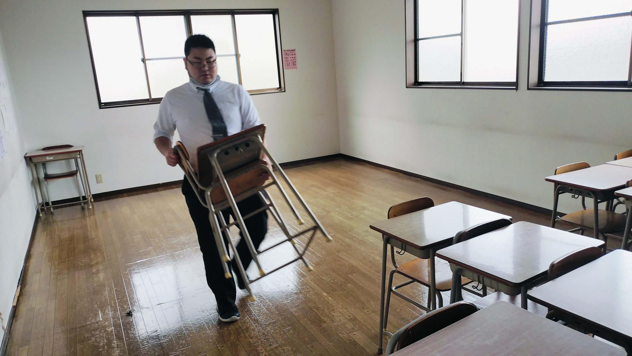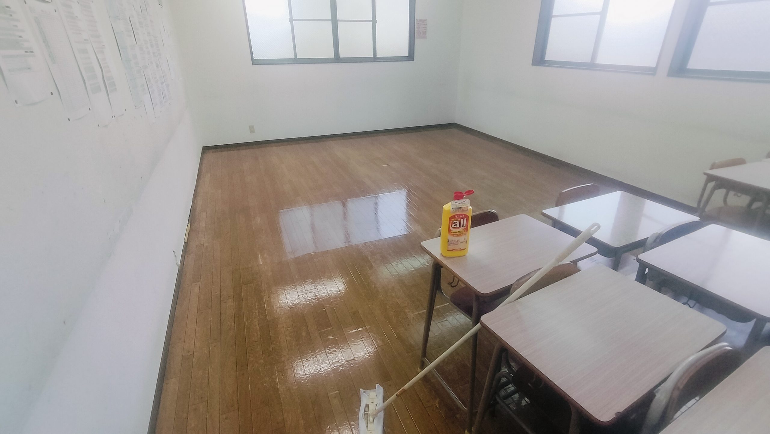 自習室を含めて8教室のワックスがけが終わり、スッキリです。