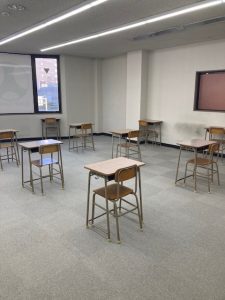 昨日、机やらいろいろ搬入をしまして、教室の形を成してきました。