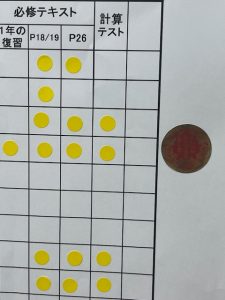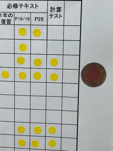 写真は新中学2年生向けのものですが、すでにすべて終えて合格シールをもらった人が一名。Mさん頑張りましたね!!