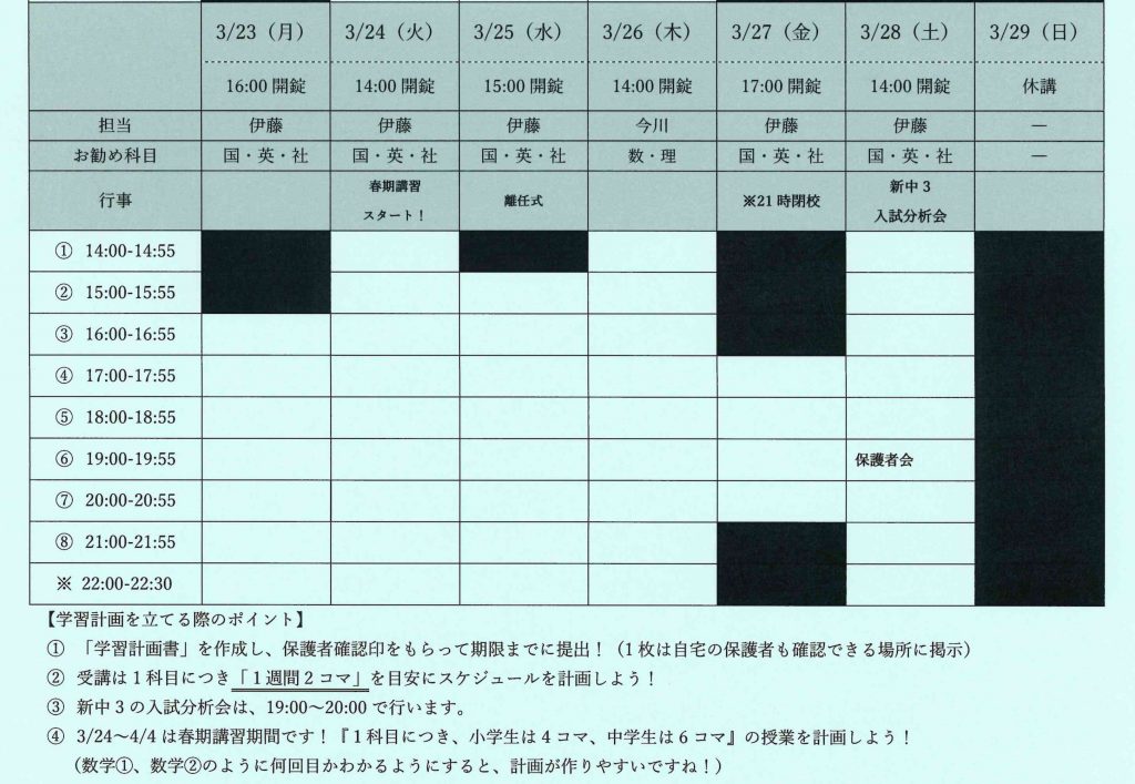 明日から、春期講習が始まりますので・・