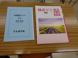 昭和校 初日! こんにちは。藤原です。 本日が春期講習初日となります! まずは、中3生からスタート。 既に写真のように準備は万全です。 講習生もこれから春期講習を通して、 今までの自分を超えよう!! 小学生のスタートは27日(金)からですので、 まだまだ春期講習は受付中です!! 「合格おめでとうチラシ」が出ました。 🌸春期チラシ🌸は、春に合うピンクの紙で印刷しました。 こちらもよろしくお願いいたします。 春期講習会詳細は👇をクリック!!