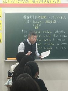 英語の授業を後ろから見学させていただきましたが、みなさんメリハリをつけて授業を聞いています。今日は小倉先生による「現在完了形(経験)」でしたが、解説後に問題をしっかり解けていました。ちなみに、”once”の発音は覚えましたか? 「オンチェ」ではないですよ!