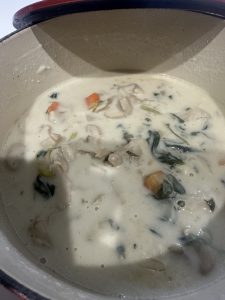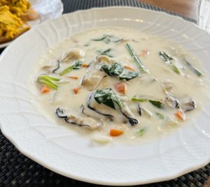 生ガキはもちろん、お勧めは牡蠣のチャウダー。ブールマニエで簡単に作りました。牡蠣の旨味がたっぷりの美味しいスープになりました!※ブールマニエはバターと小麦粉を練ったもの。これでとろみをつけます。簡単にホワイトソースができちゃうので、忙しいあなたにお勧め!