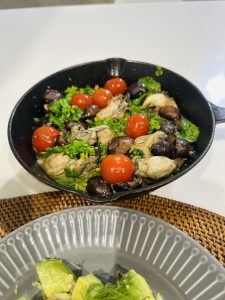 そして牡蠣のアヒージョ。簡単に美味しく作れるのでお勧め!アボカドとサーモンのサラダもおまけ笑