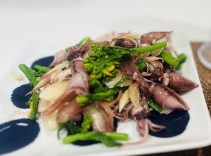 ホタルイカと菜の花のサラダ。旬×旬のこの時期ならではのメニュー。塩麹・お酢・にんにくのすりおろしで味付け。最近塩麴にもハマっていまして、つい何にでも使ってしまいます笑