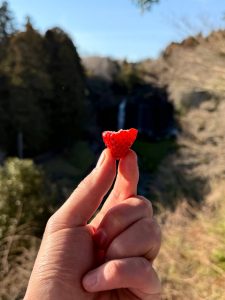 友人は一泊してくれたので、翌日はもう少しアクティブに自然を楽しもう!ということで、さらに色々な場所へ行きました。まずは静岡の白糸の滝と音止の滝へ。午前から午後にかけてゆっくり過ごし、滝の近くまで降りていきました。さらに、いろいろな種類のいちごの食べ比べもしました!