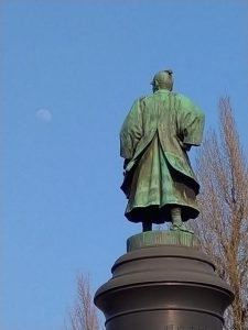 武道館前を通り、田安門から出て靖国神社へ。靖国神社といえば大村益次郎像です。視線の先には上野公園があります。上野公園は戊辰戦争で戦場になった場所です。長州藩の大村益次郎は江戸城に入り官軍の指揮をとりました。噂では大村益次郎像の視線の先に西郷隆盛像があるといいます。