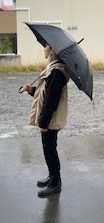 数学・国語担当の健太先生は雨のときは雨合羽を着用して事故の無いように送迎しています