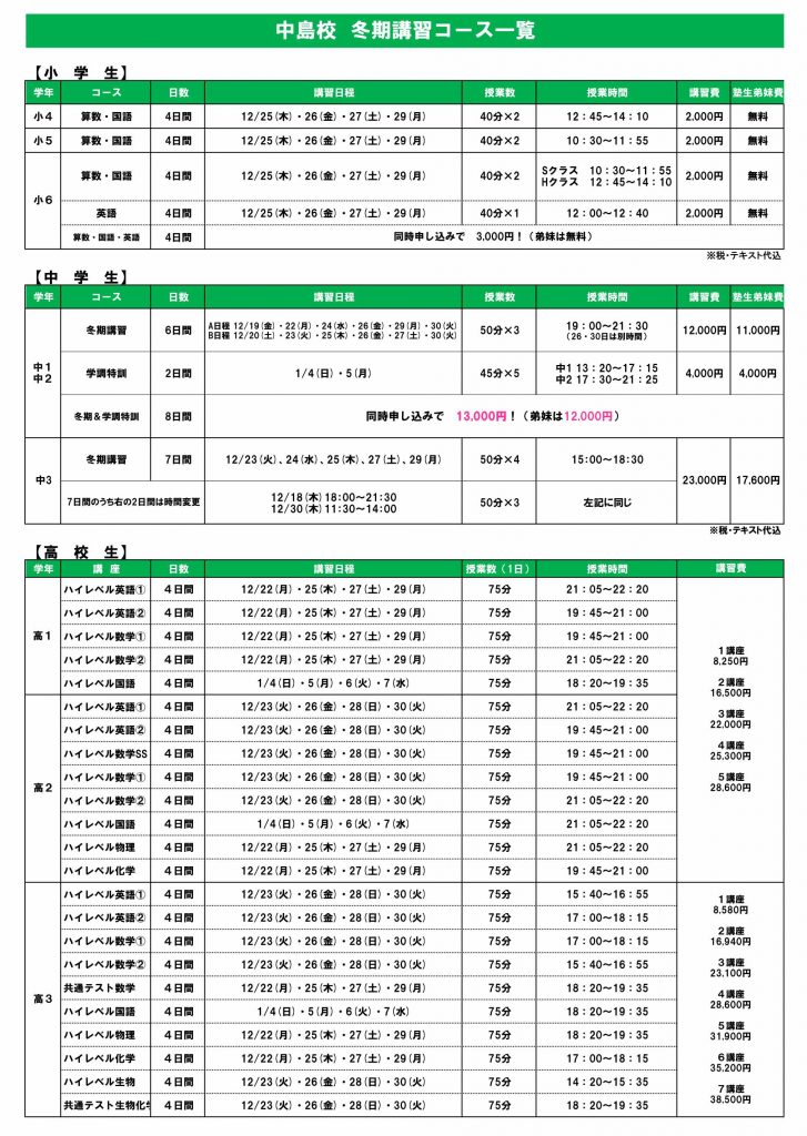 中学生の冬期講習説明会へ参加希望の方はこちら
