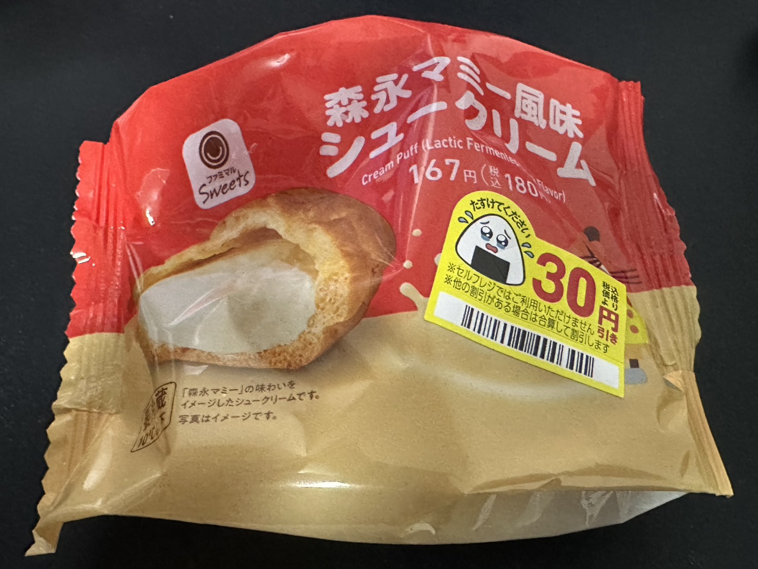 食べてみると、シュー生地は大差ないですが、中のクリームが強烈なインパクトを残してきます。まさに「マミー風味」と言わんばかりの香りと味わいで、乳酸菌飲料の独特な酸味がこれでもかと再現されています。独特な酸味が真っ先に口の中に広がり、その後にほのかな甘みを感じられます。本当に「クリームがマミー」でした。これに尽きます。
