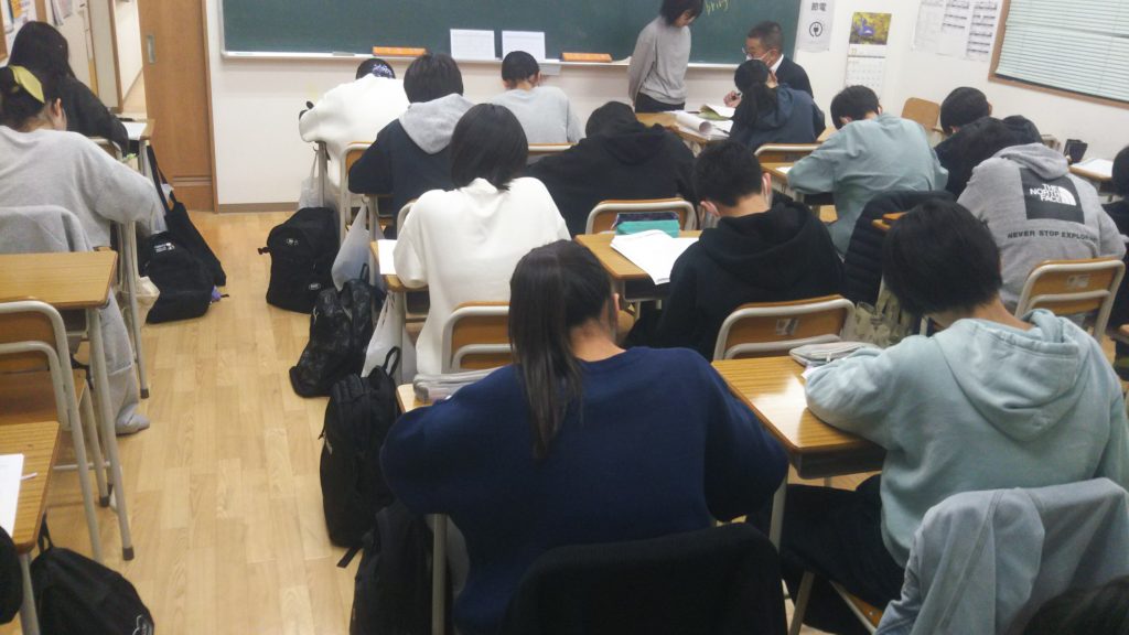 本日は中1・中2の冬期講習最終回。どのクラスも4コマずつ学調対策よく頑張っていました!!私も空いている時間に中1の社会の授業や、中2の数学の授業にお邪魔しました。見ての通り、良い集中力と緊張感です!!学調まであと10日を切りました。塾でやった県統一模試の直しや、冬期講習のテキストのやり直しをしましょうね!!