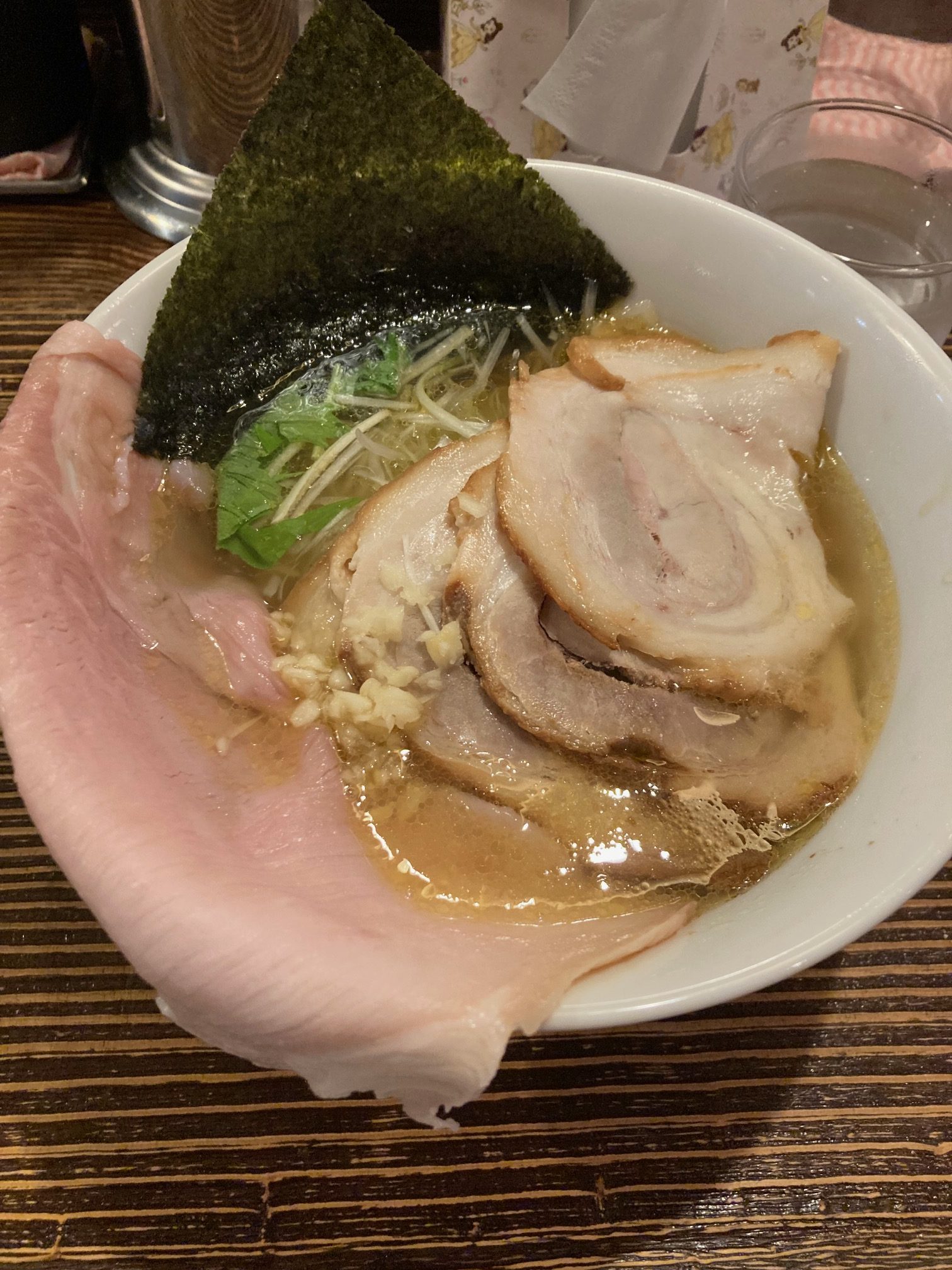 富士市の有名店のラーメン。次郎系のお店ですが次郎系のラーメンを食べると死神が「歳を考えような!なっ!」と言って肩をたたく幻影が見えるので普通のチャーシュー麺